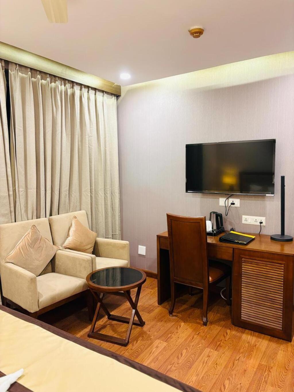 Deluxe Queen Room. The double room has a private bathroom, air conditioning, a private entrance, as well as a seating area with a flat-screen TV. The double room offers soundproof walls, a minibar, a tea and coffee maker, a TV, as well as city views. The unit has 1 bed. ;